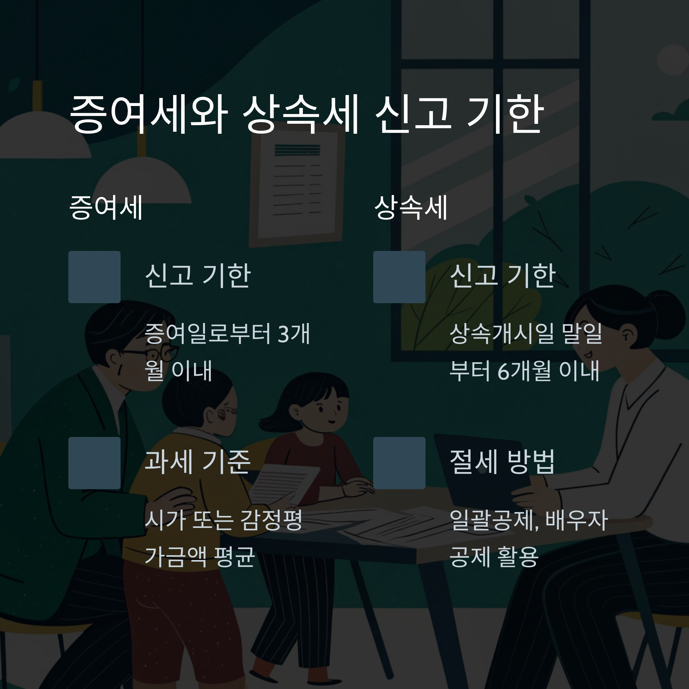 양도, 증여, 상속, 보유에 따른 모든 세금은 신고기한, 공제 조건, 과세 기준이 상이하므로
